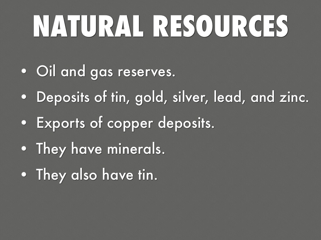 Deposits of tin, gold, silver, lead, and zinc.