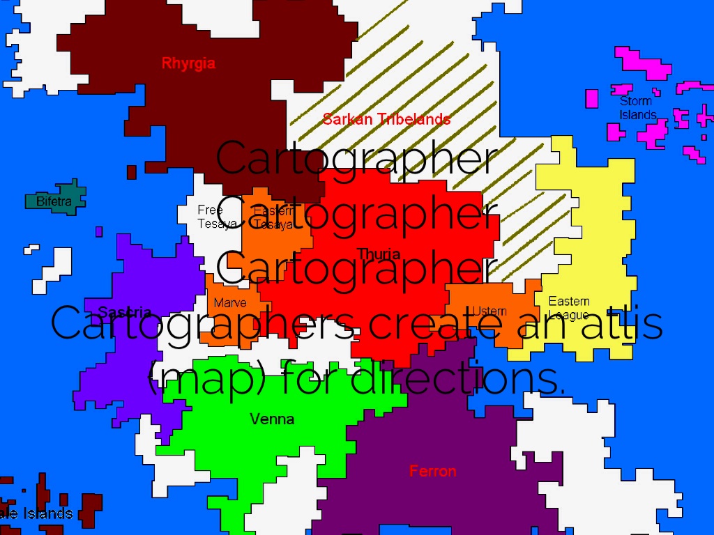 Cartographers create an atlis (map) for directions.