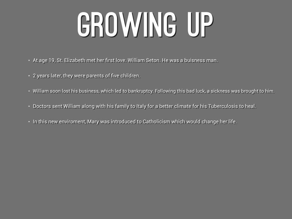 At age 19, St. Elizabeth met her first love. William Seton. He was a buisness man.
