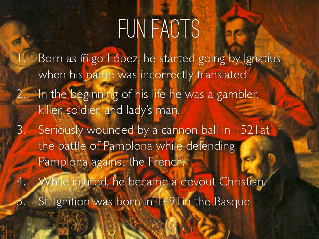 - Seriously wounded by a cannon ball in 1521at the battle of Pamplona while defending Pamplona against the French.