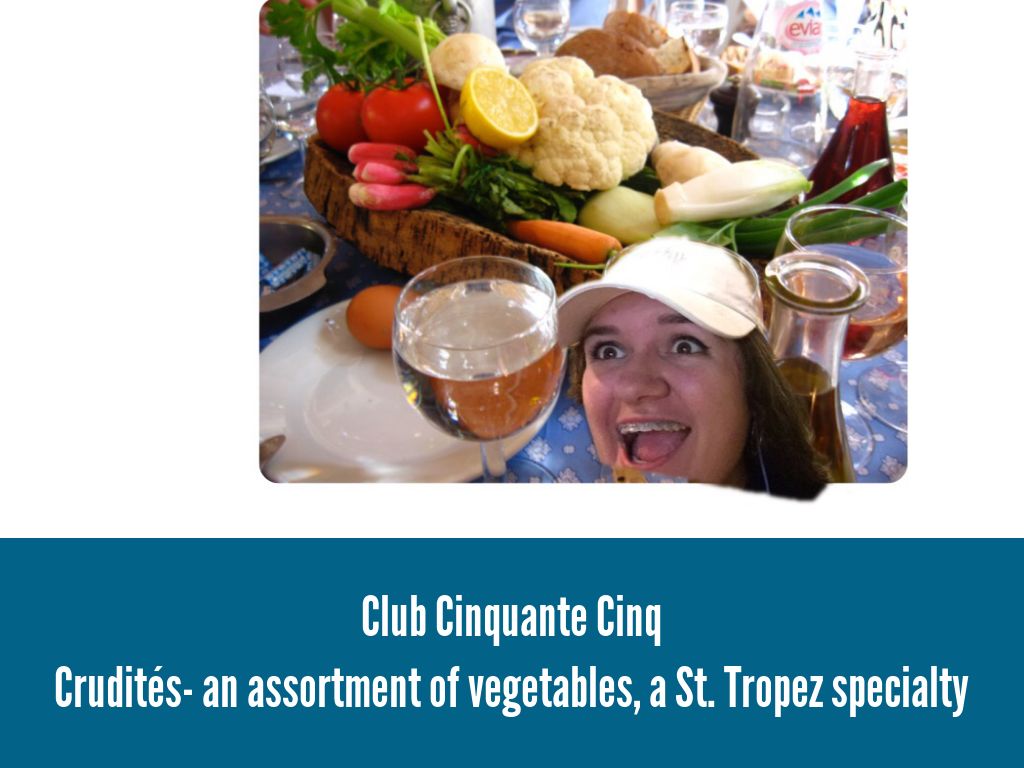 Crudités- an assortment of vegetables, a St. Tropez specialty