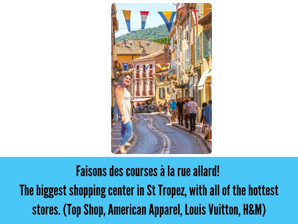 The biggest shopping center in St Tropez, with all of the hottest stores. (Top Shop, American Apparel, Louis Vuitton, H&M)