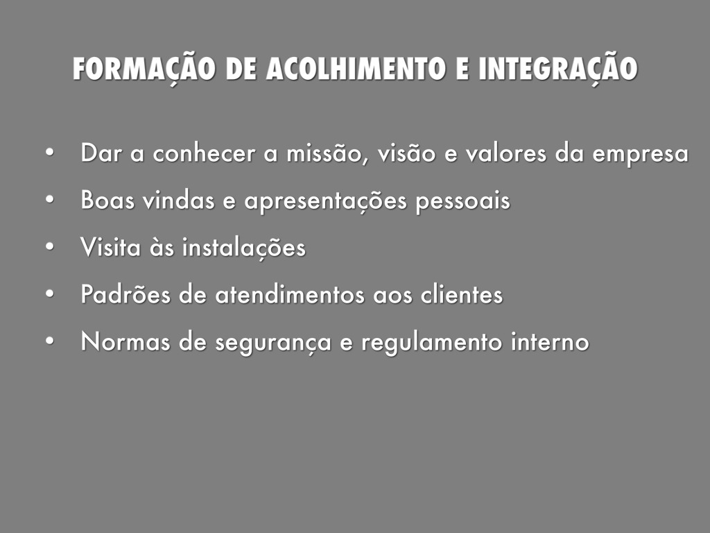 FORMAÇÃO DE ACOLHIMENTO E INTEGRAÇÃO