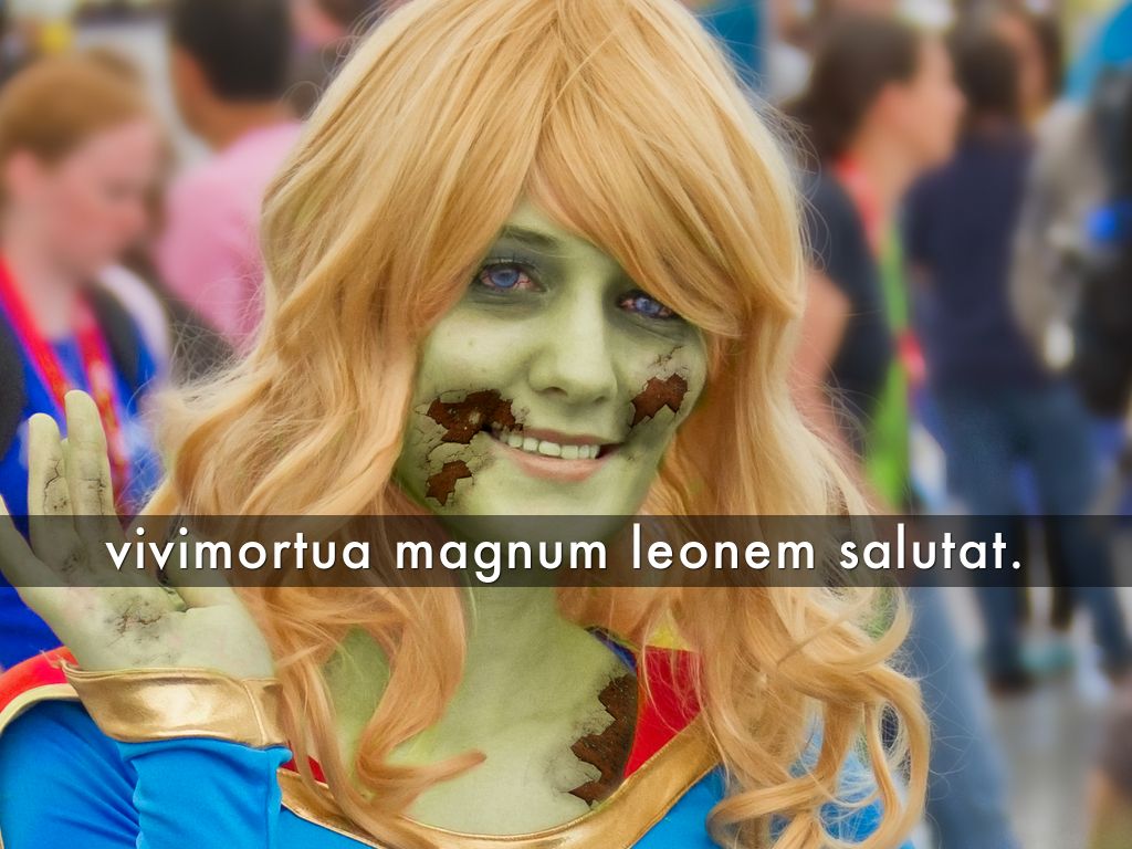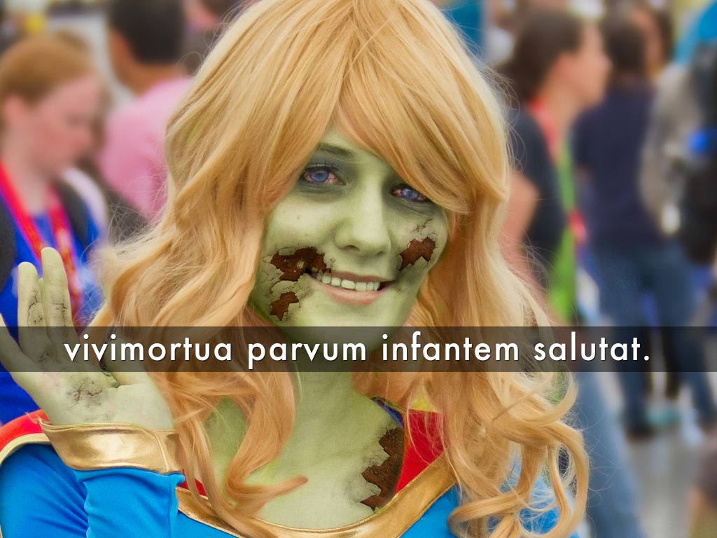 vivimortua feminam pulchram salutat.