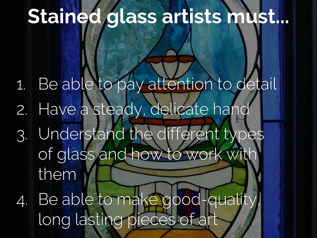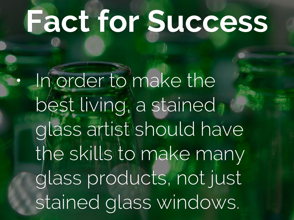 • In order to make the best living, a stained glass artist should have the skills to make many glass products, not just stained glass windows.