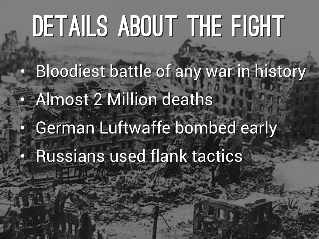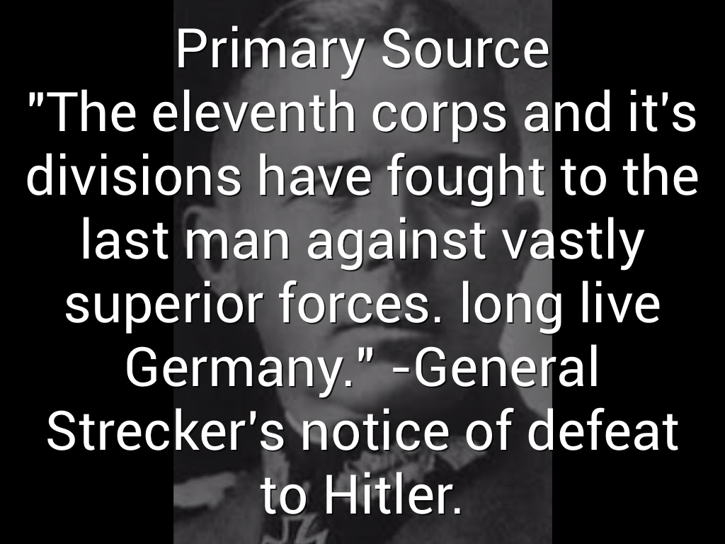 "The eleventh corps and it's divisions have fought to the last man against vastly superior forces. long live Germany." -General Strecker's notice of defeat to Hitler.