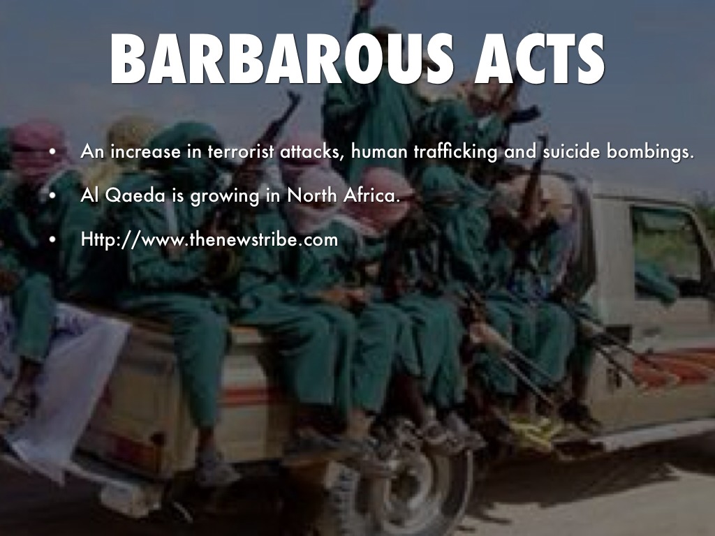 • An increase in terrorist attacks, human trafficking and suicide bombings.