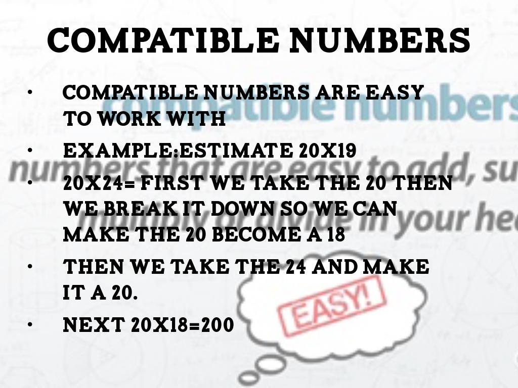 COMPATIBLE NUMBERS ARE EASY TO WORK WITH