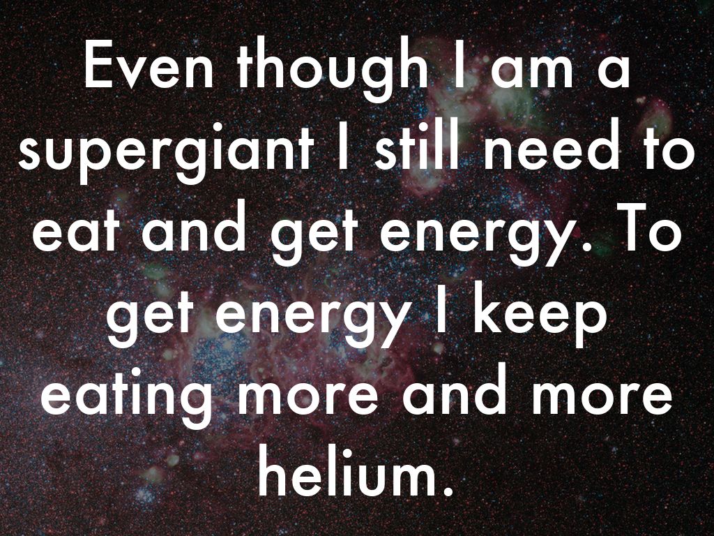 Even though I am a supergiant I still need to eat and get energy. To get energy I keep eating more and more helium.