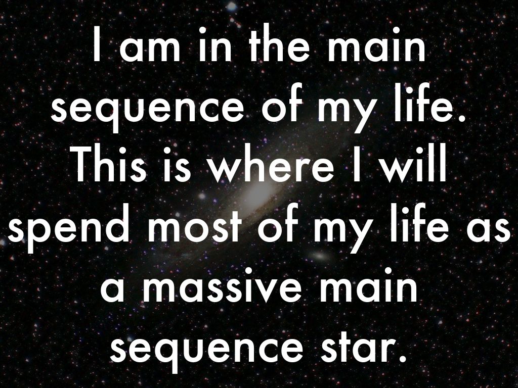 I am in the main sequence of my life. This is where I will spend most of my life as a massive main sequence star.