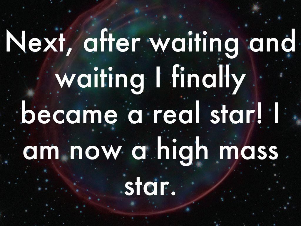 Next, after waiting and waiting I finally became a real star! I am now a high mass star.