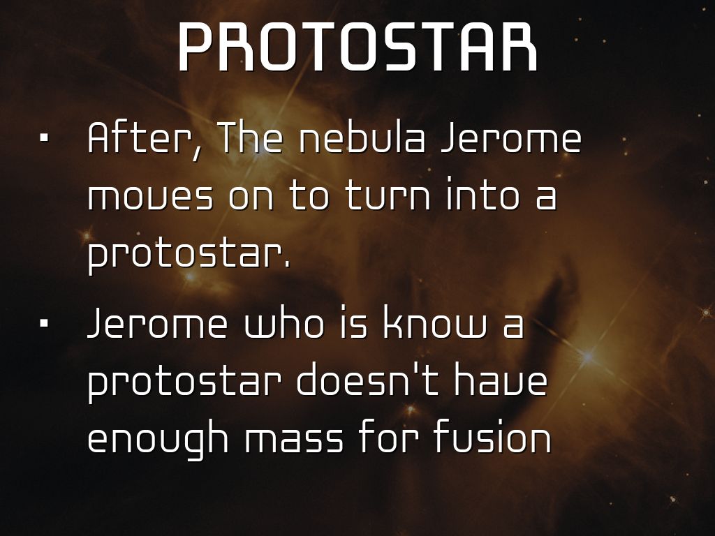 After, The nebula Jerome moves on to turn into a protostar.