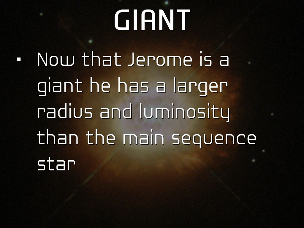 Now that Jerome is a giant he has a larger radius and luminosity than the main sequence star