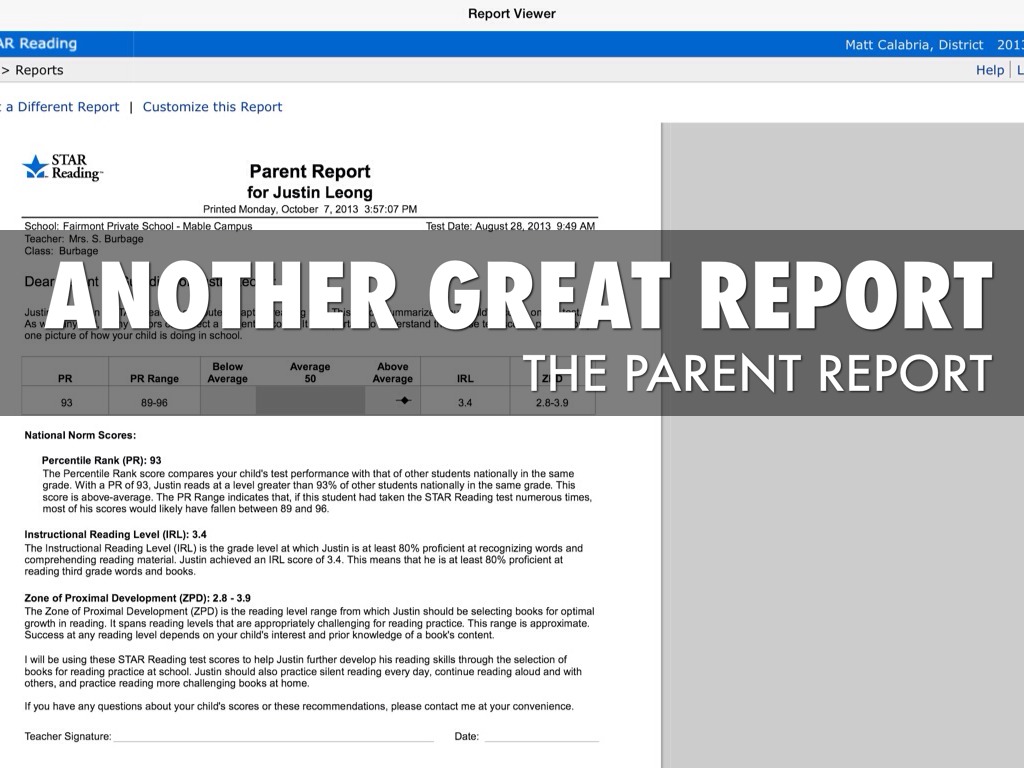 A SIMILAR REPORT CAN BE PRODUCED FOR EACH STUDENT