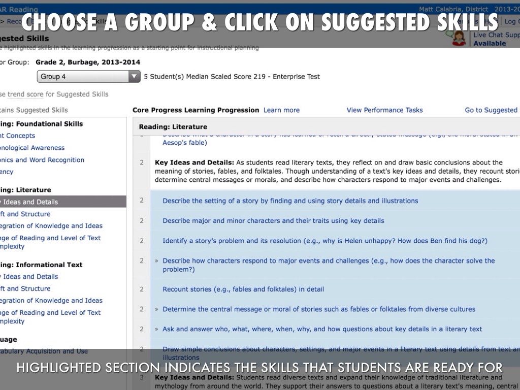 HIGHLIGHTED SECTION INDICATES THE SKILLS THAT STUDENTS ARE READY FOR