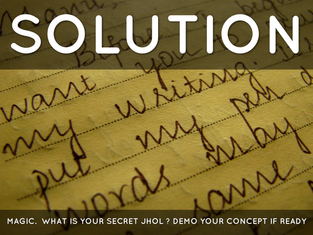 MAGIC. WHAT IS YOUR SECRET JHOL ? DEMO YOUR CONCEPT IF READY