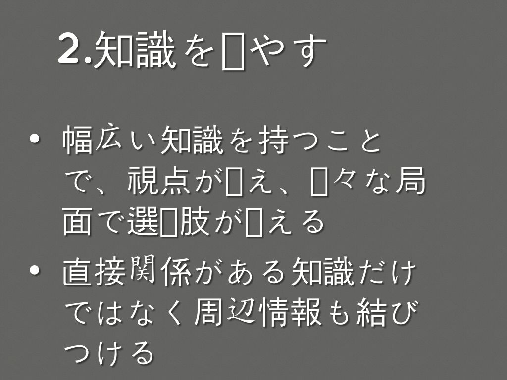 • 幅広い知識を持つことで、視点が増え、様々な局面で選択肢が増える