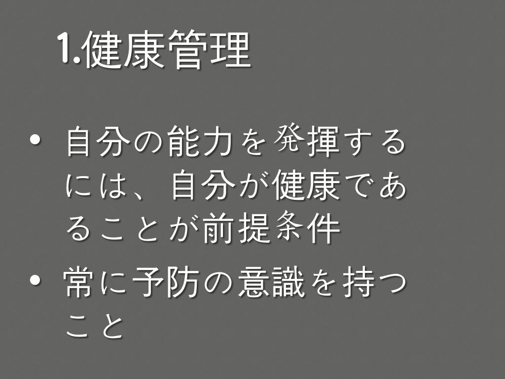 • 自分の能力を発揮するには、自分が健康であることが前提条件