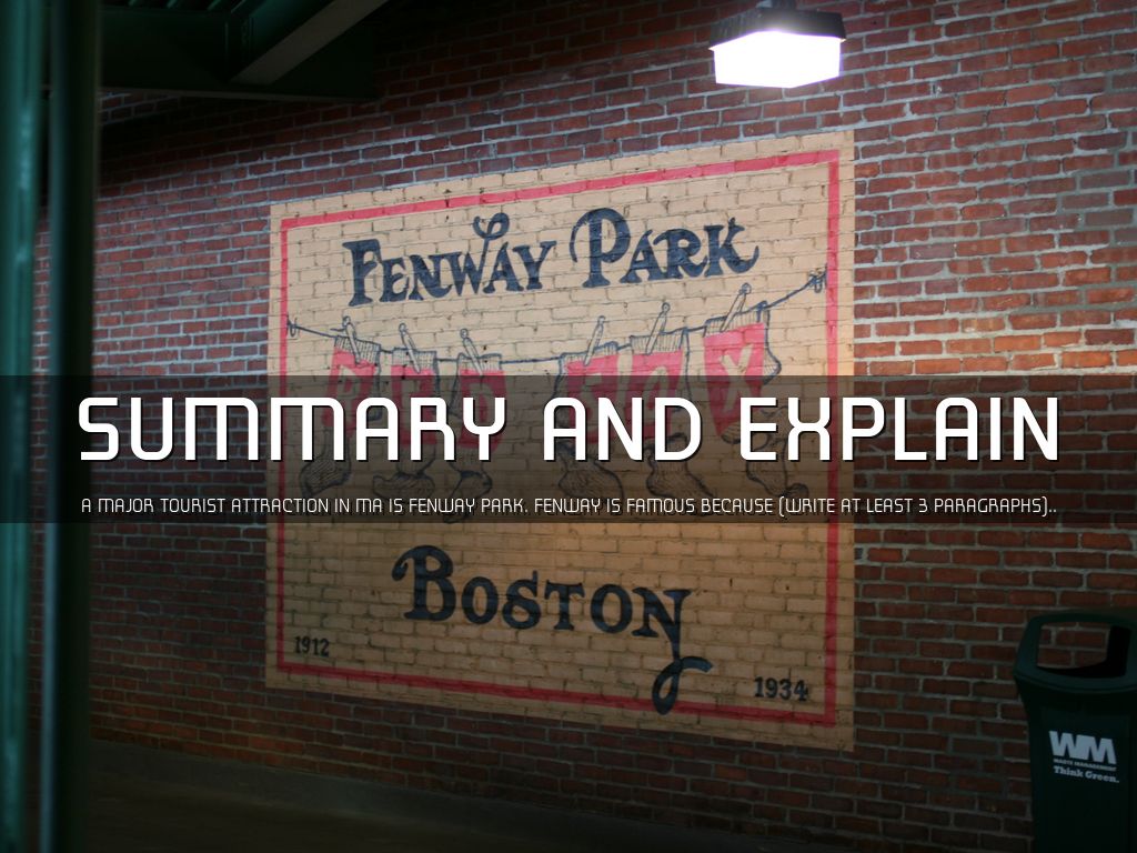 A major tourist attraction in MA is Fenway Park. Fenway is famous because (write at least 3 paragraphs)..