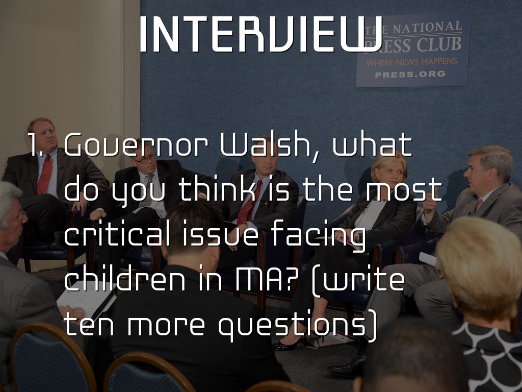 Governor Walsh, what do you think is the most critical issue facing children in MA? (write ten more questions)