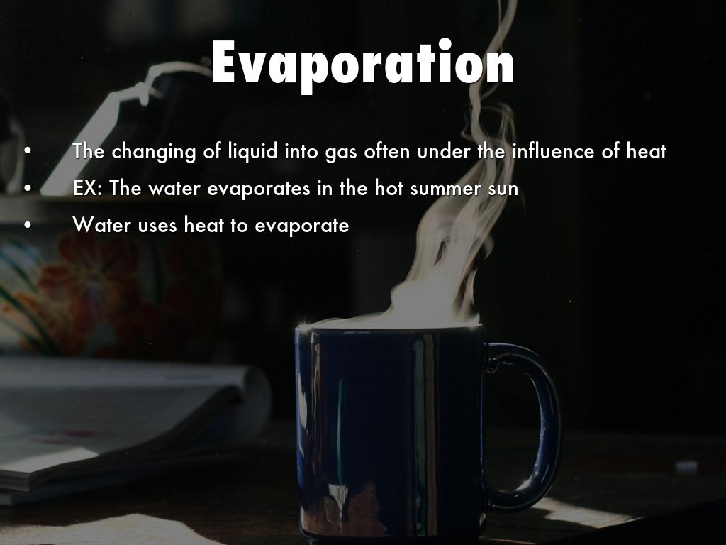 EX: The water evaporates in the hot summer sun