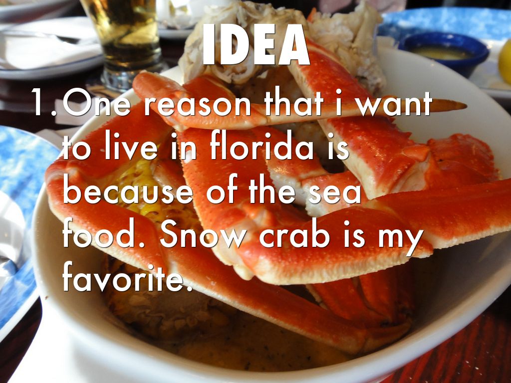 One reason that i want to live in florida is because of the sea food. Snow crab is my favorite.