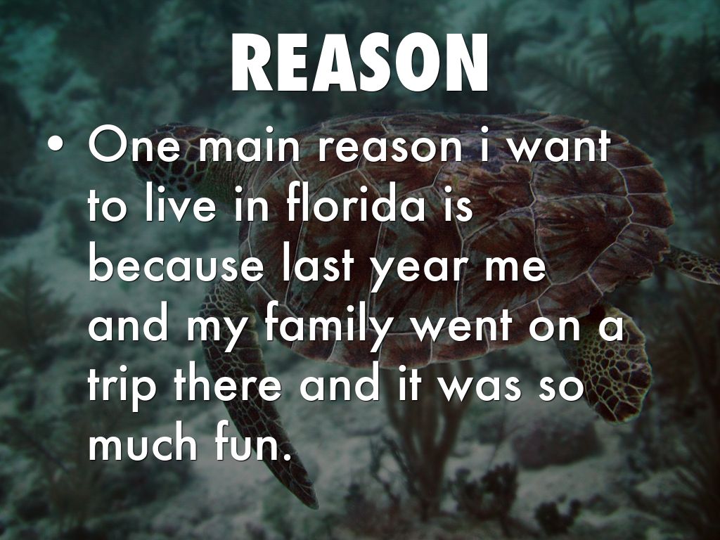 One main reason i want to live in florida is because last year me and my family went on a trip there and it was so much fun.