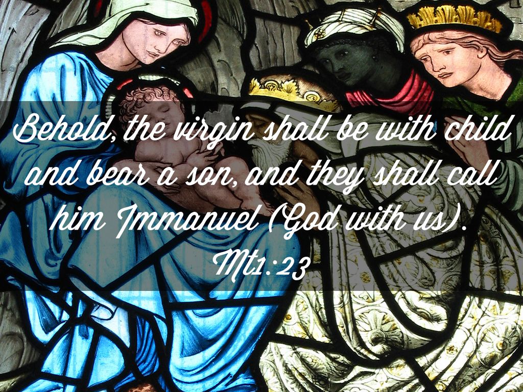 Behold, the virgin shall be with child and bear a son, and they shall call him Immanuel (God with us). Mt1:23