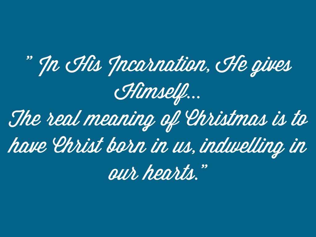 The real meaning of Christmas is to have Christ born in us, indwelling in our hearts."