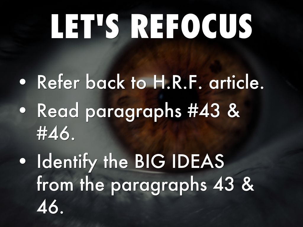 • Identify the BIG IDEAS from paragraphs 43 & 46.