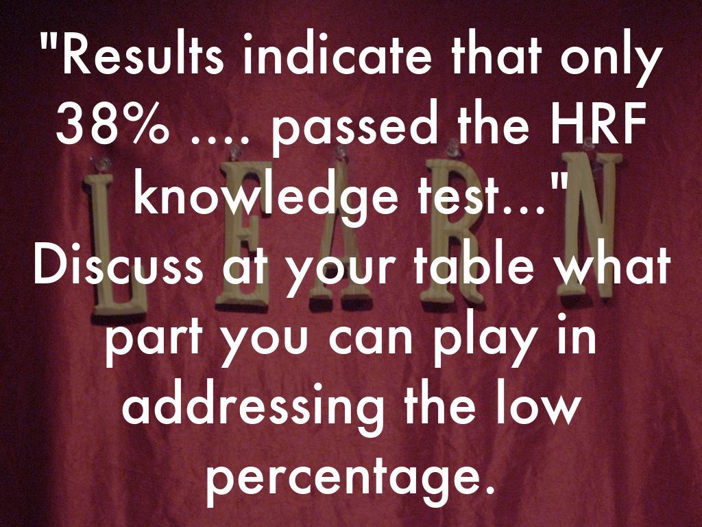 "Results indicate that only 38% .... passed the HRF knowledge test..."