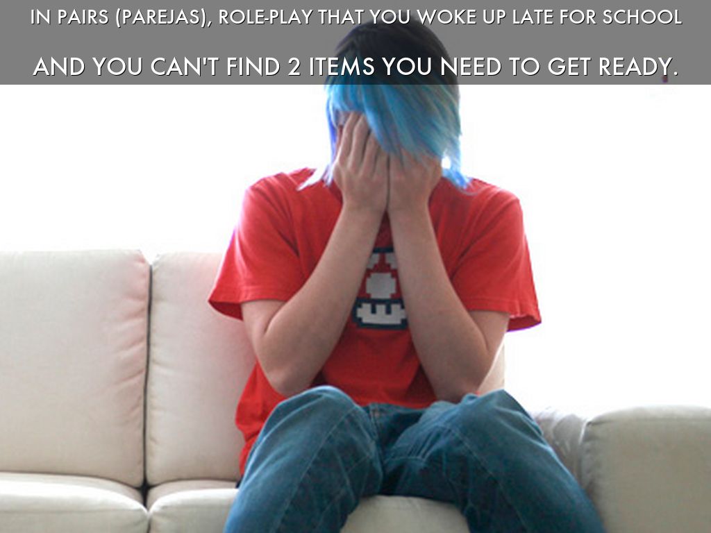 IN PAIRS (PAREJAS), ROLE-PLAY THAT YOU WOKE UP LATE FOR SCHOOL