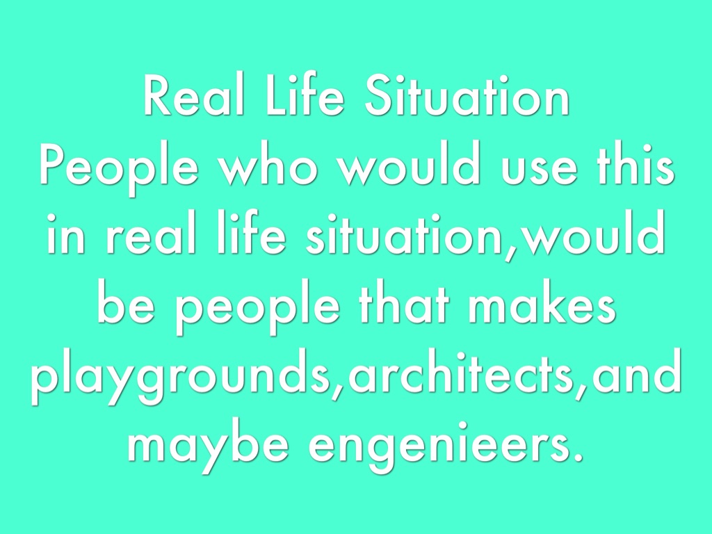 People who would use this in real life situation,would be people that makes playgrounds,architects,and maybe engenieers.