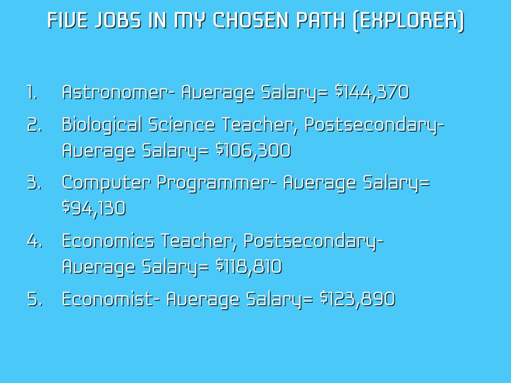 Five Jobs in my Chosen Path (Explorer)