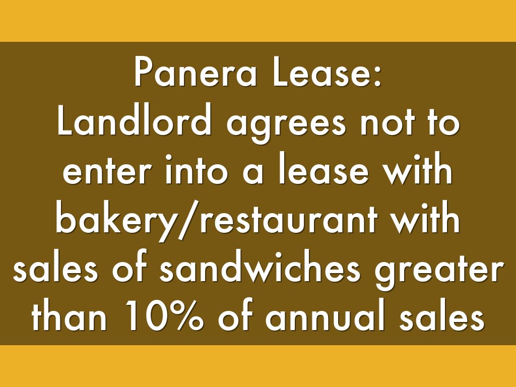 Landlord agrees not to enter into a lease with bakery/restaurant with sales of sandwiches greater than 10% of annual sales