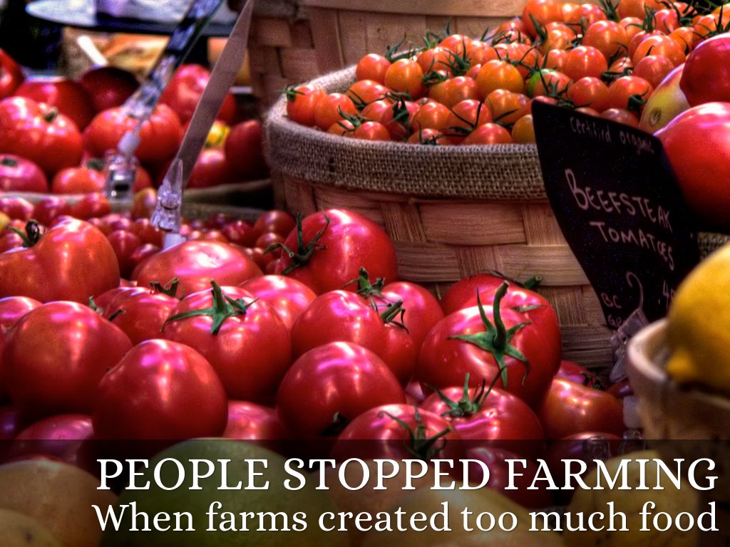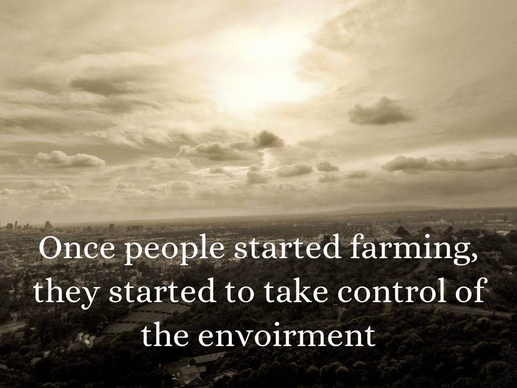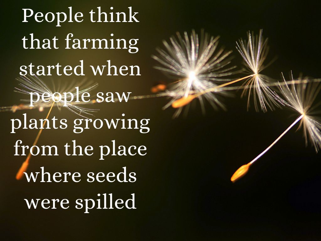People think that farming started when people saw plants growing from the place where seeds were spilled