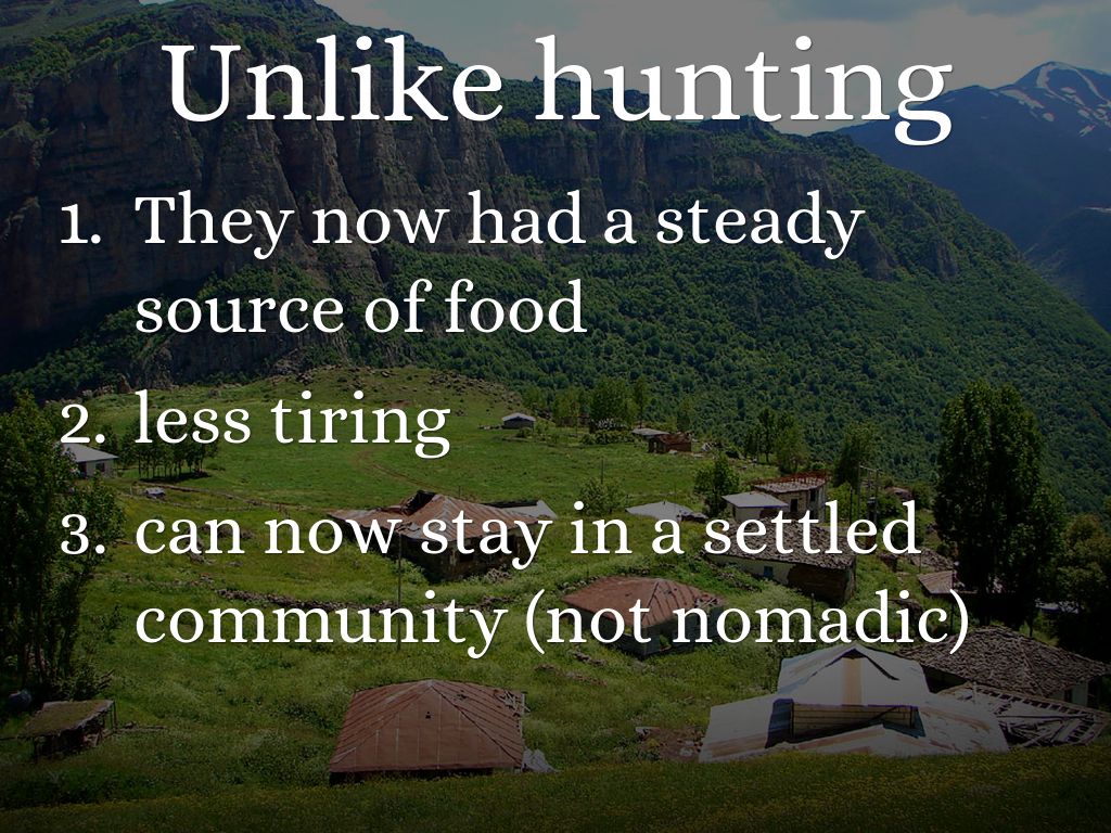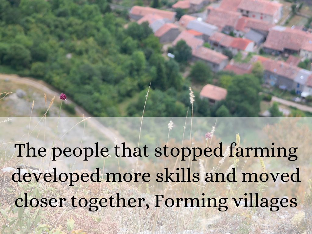 The people that stopped farming developed more skills and moved closer together, Forming villages