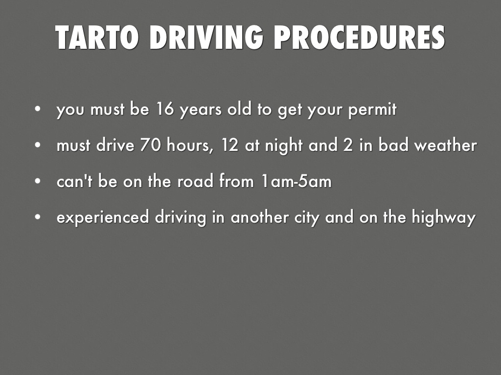 Tarto driving procedures