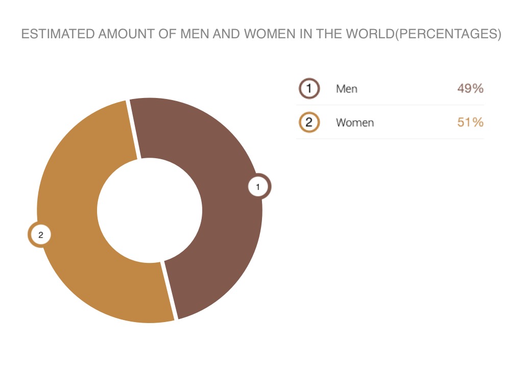 ESTIMATED AMOUNT OF MEN AND WOMEN IN THE WORLD(PERCENTAGES)