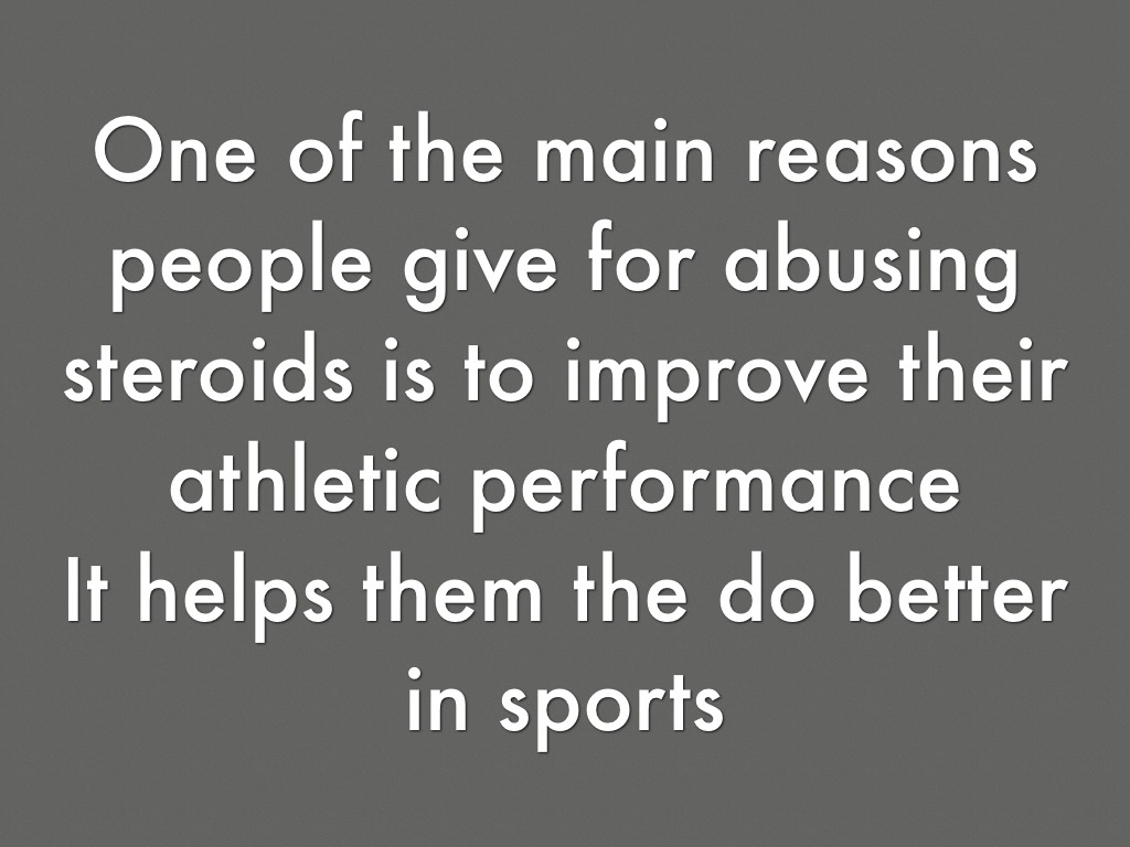 One of the main reasons people give for abusing steroids is to improve their athletic performance