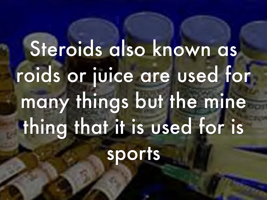 Steroids also known as roids or juice are used for many things but the mine thing that it is used for is sports