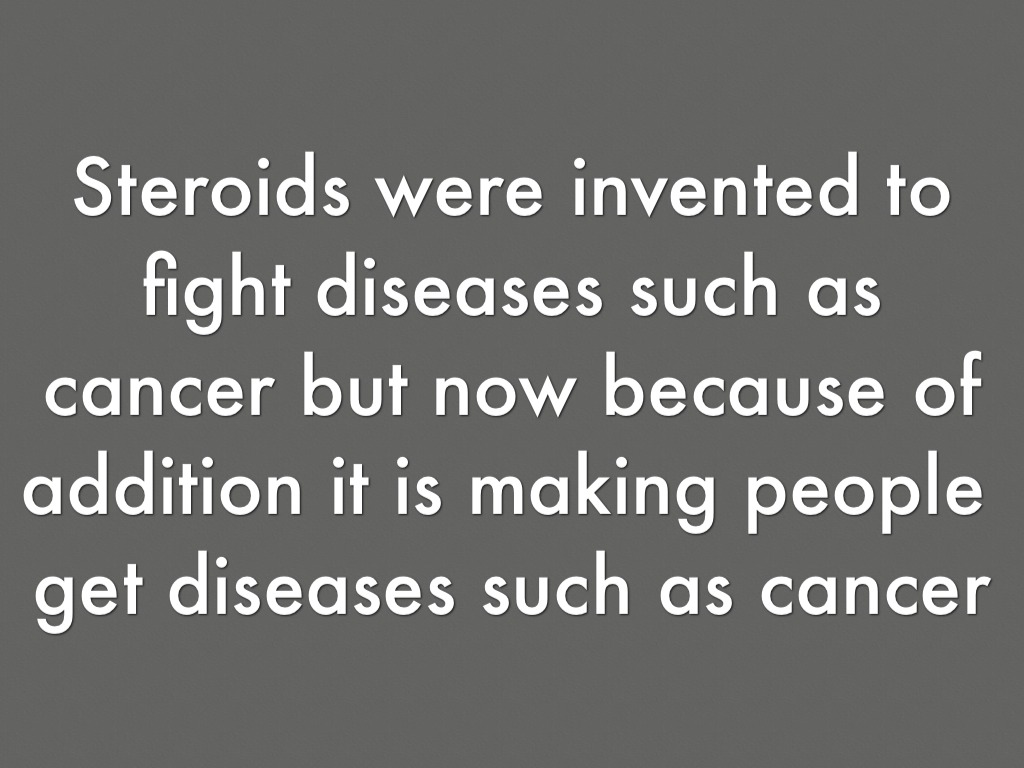 Steroids were invented to fight diseases such as cancer but now because of addition it is making people get diseases such as cancer