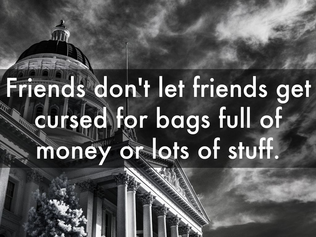 Friends don't let friends get cursed for bags full of money or lots of stuff.