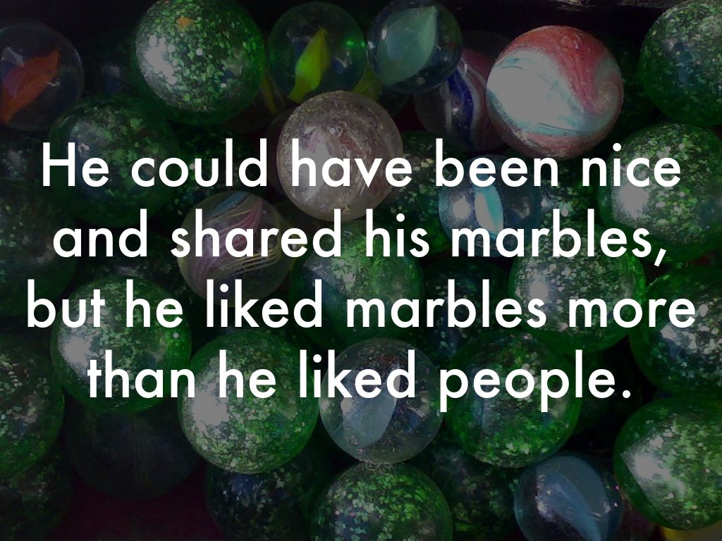 He could have been nice and shared his marbles, but he liked marbles more than he liked people.
