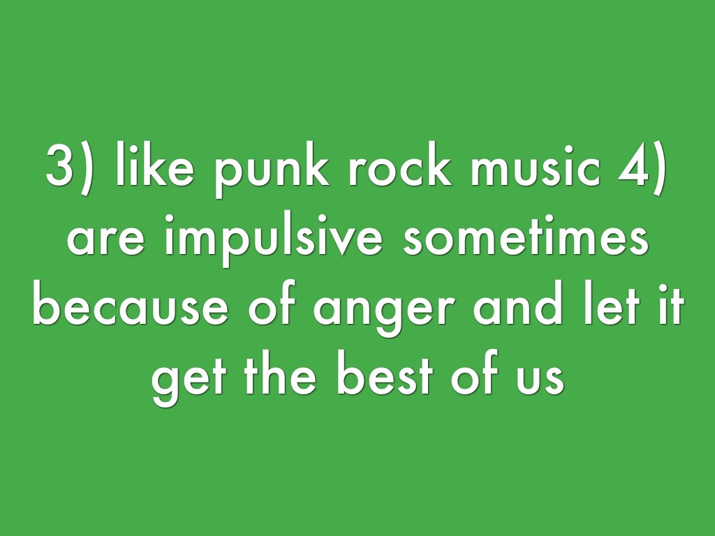3) like punk rock music 4) are impulsive sometimes because of anger and let it get the best of us