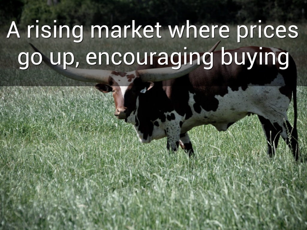 A rising market where prices go up, encouraging buying
