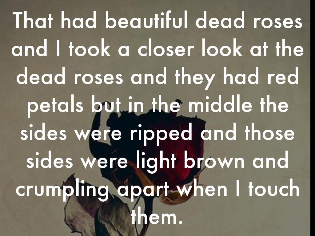 That had beautiful dead roses and I took a closer look at the dead roses and they had red petals but in the middle the sides were ripped and those sides were light brown and crumpling apart when I touch them.
