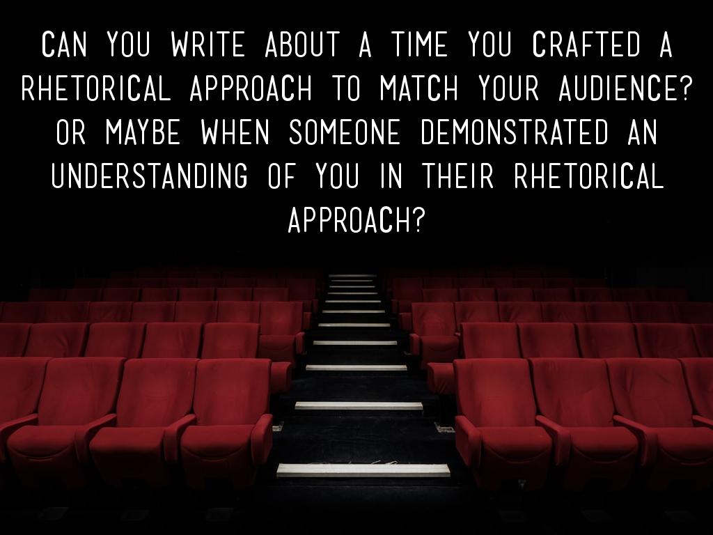Can you write about a time you crafted a rhetorical approach to match your audience? Or maybe when someone demonstrated an understanding of you in their rhetorical approach?