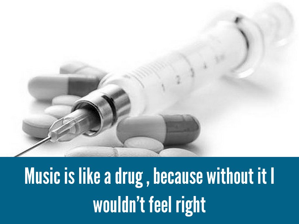 Music is like a drug , because without it I wouldn't feel right
