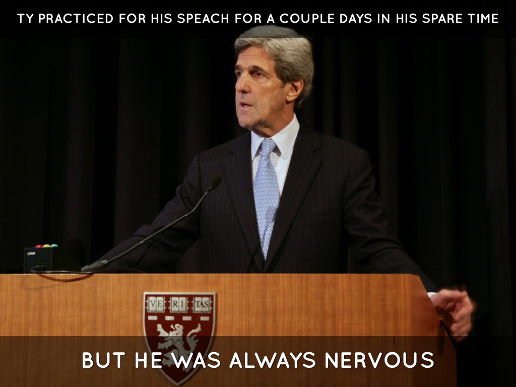 TY PRACTICED FOR HIS SPEACH FOR A COUPLE DAYS IN HIS SPARE TIME